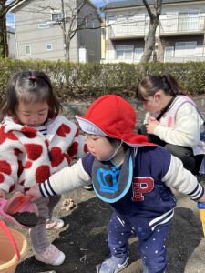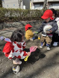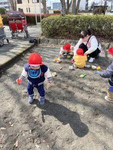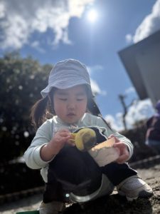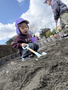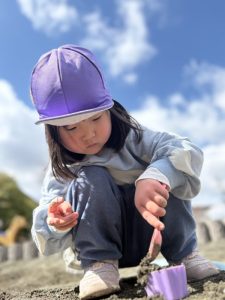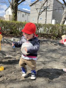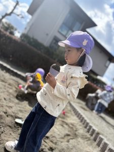 (公園で砂遊びをしたよ!)