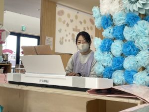 (新しいピアノで朝の会したよ!)